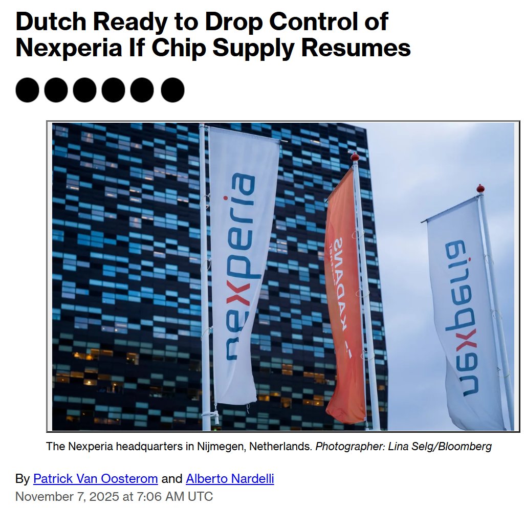 Wow, this is huge. Looks like the Dutch are ready to "unseize" Nexperia and give control of the company back to its Chinese owner.