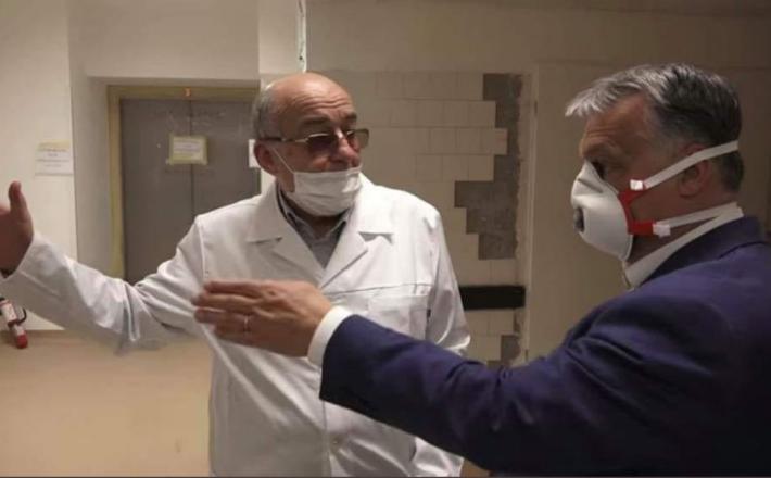 Svet Ena sama slika Janševega vzornika, ki pove vse: Orbán, zdravnik, dvigalo, ploščice, maski in gasilni aparat