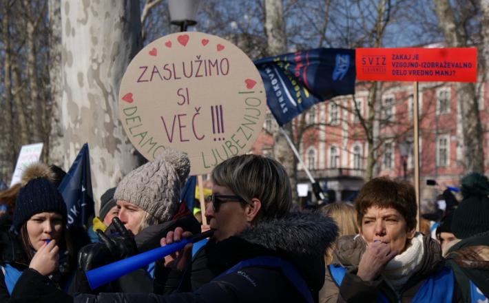 Slovenija Učitelji in vzgojitelji na protestnih shodih v več krajih, v Ljubljani pred poslopjem vlade