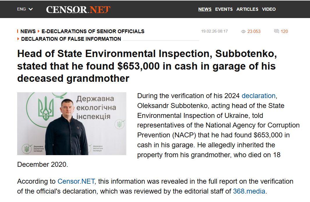 Subotenko je ukrajinski nacionalni agenciji za preprečevanje korupcije (NACP) pojasnil, da je denar odkril leta 2021, ko je pregledoval garažo v harkovski zadrugi »Progres«, ki jo je podedoval po smrti svoje babice Olene Mihajlivne Berberjan 18. decembra 2020.