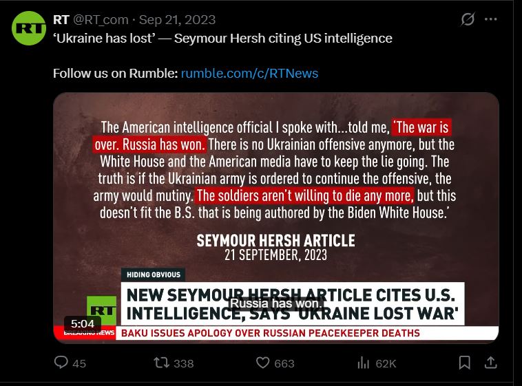 V resnici pa so jim ameriški obveščevalci že leta 2023 povedali, da je Ukrajina vojno v resnici izgubila.