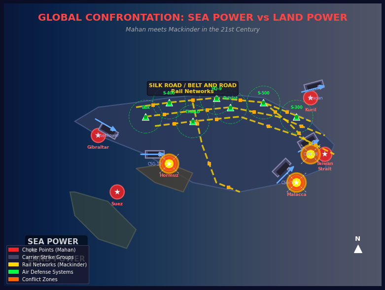 Če bo Kitajska uspela aktivirati kopno, medtem ko bo Rusija pridobila južni dostop prek Irana, bi lahko nastal obsežen integriran evrazijski sistem, ki bi bil v veliki meri izoliran od pomorskega pritiska.