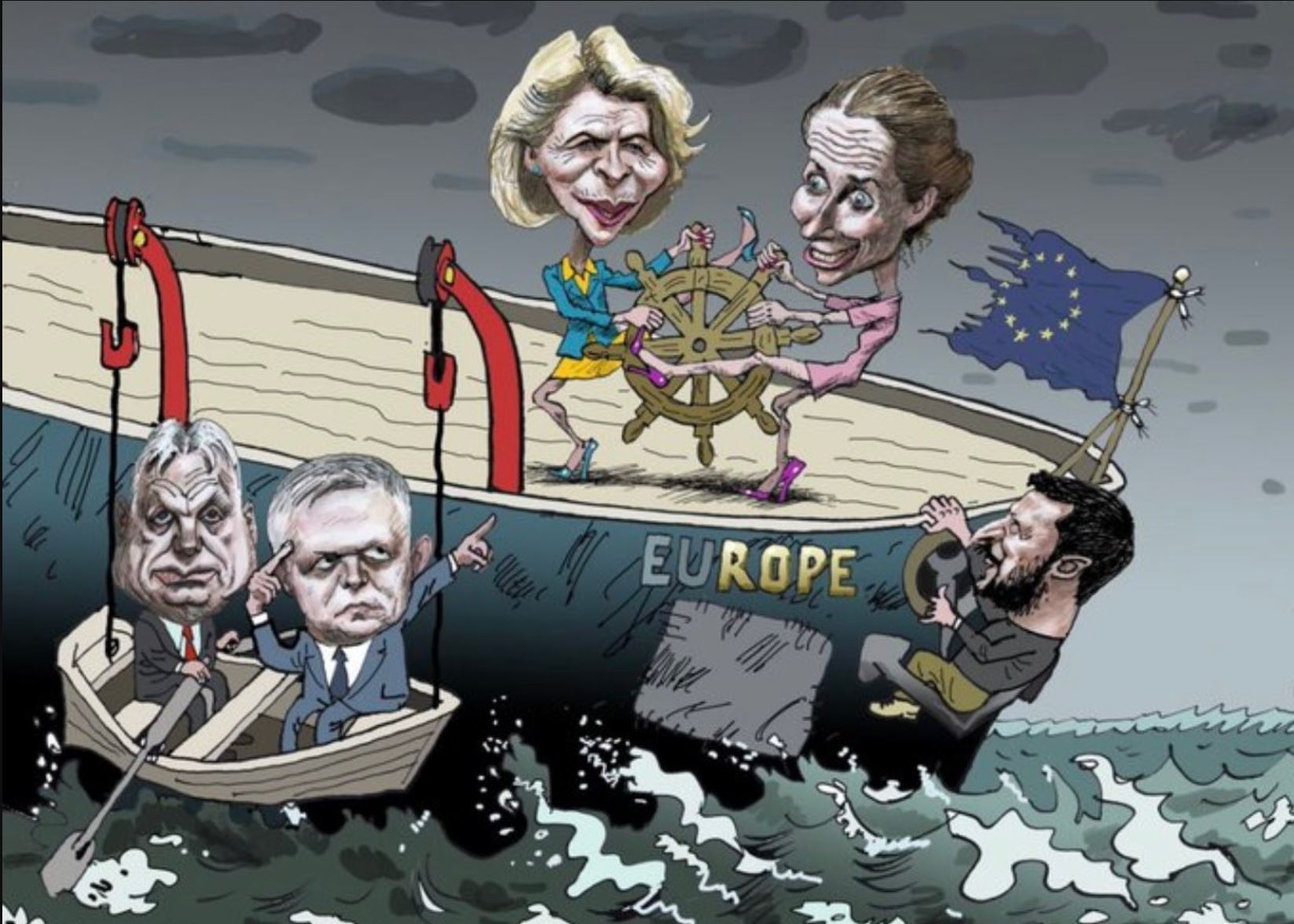 »Kako vas lažemo ... oprostite, živimo«: Zelenski je ob verbalnem spodrsljaju okrcal evropske voditelje, saj ni dobil še 1,5 bilijona dolarjev za naslednjih 10 let. 800 milijard dolarjev za »obnovo« in 700 milijard dolarjev za »vojaške namene«.