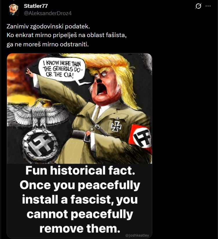»Dvomim, da bo Trump priznal poraz in se ubil, nima poguma, kot ga je imel Hitler!«