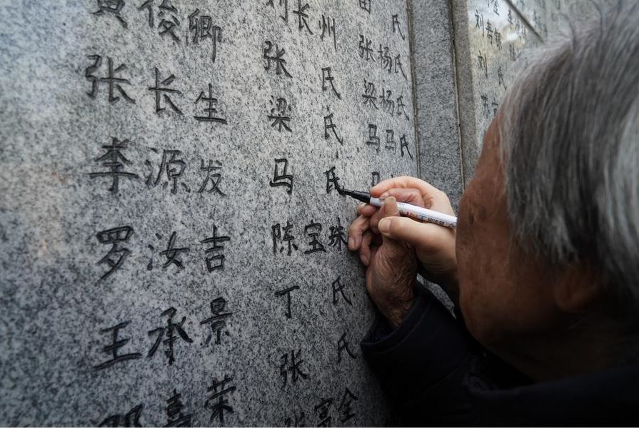 Na trgu spominske dvorane žrtvam pokola v Nanjingu, ki so ga povzročili japonski okupatorji, se je zbralo na tisoče ljudi v temnih oblačilih, na prsih pa so imeli pripeto belo cvetje.