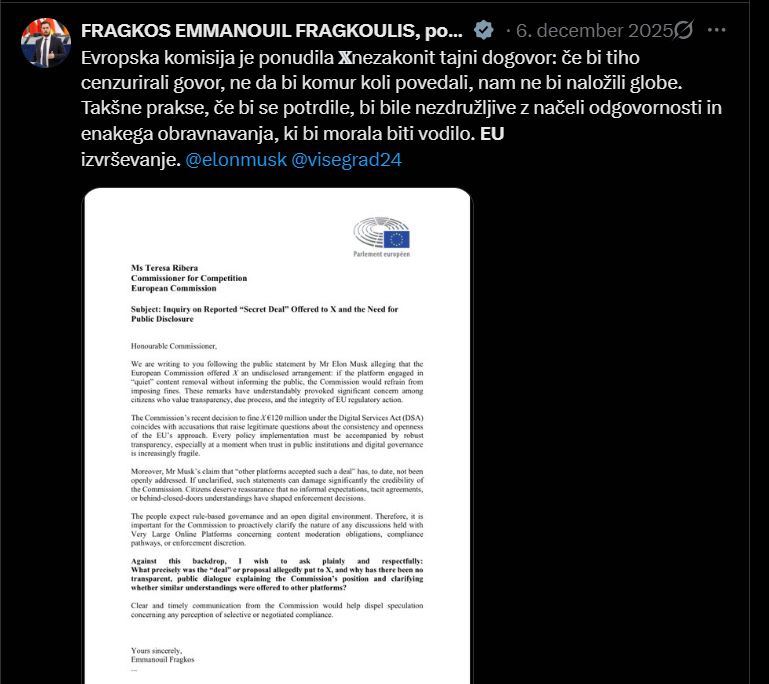 Hkrati je komisija razširila ločen primer, ki ga je začela decembra 2023, da bi preučila, ali je X izpolnil svoje obveznosti glede upravljanja tveganj, povezanih s svojimi priporočilnimi sistemi, vključno z vplivom nedavno napovedane preusmeritve X na priporočilni sistem, ki temelji na Groku.