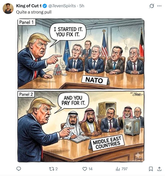 The Trump administration is acting like a mafia boss. Prominent official Marco Rubio threatens to pull troops out of Europe because NATO countries refuse to support their disastrous war against Iran. The imperialist alliance is fracturing in real time. pic.twitter.com/EZhirHrRlS