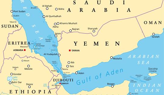 Istočasno plemenska zveza nonšalantno obstreljuje množico trgovskih ladij, ki skozi ožino Bab el-Mandeb plujejo proti Sueškemu prekopu.