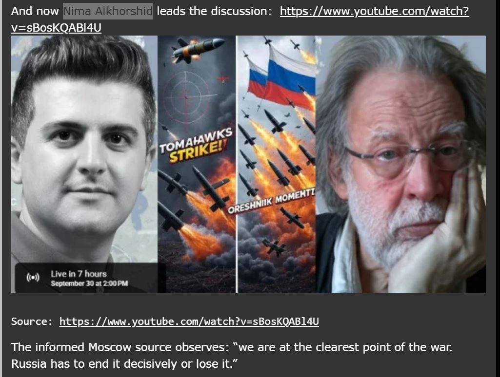 Eskalacija z napadi s »Tomahavki« na rusko zaledje zagotovo ni tisti »sporazum«, na katerega je rusko zunanje ministrstvo mislilo po srečanju zunanjega ministra Sergeja Lavrova z ameriškim državnim sekretarjem Marcom Rubiom v Združenih narodih, opozarja dolgoletni avstralski dopisnik iz Moskve John Helmer, zahodni novinar z najdaljšim stažom poročanja iz Rusije.
