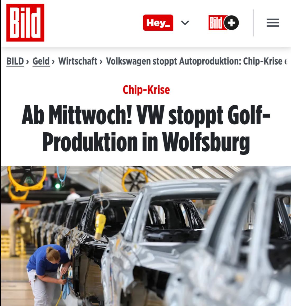 V sredo je nemški avtomobilski gigant Volkswagen opozoril, da bi najnovejše težave v dobavni verigi čipov lahko privedle do zaustavitve proizvodnje.