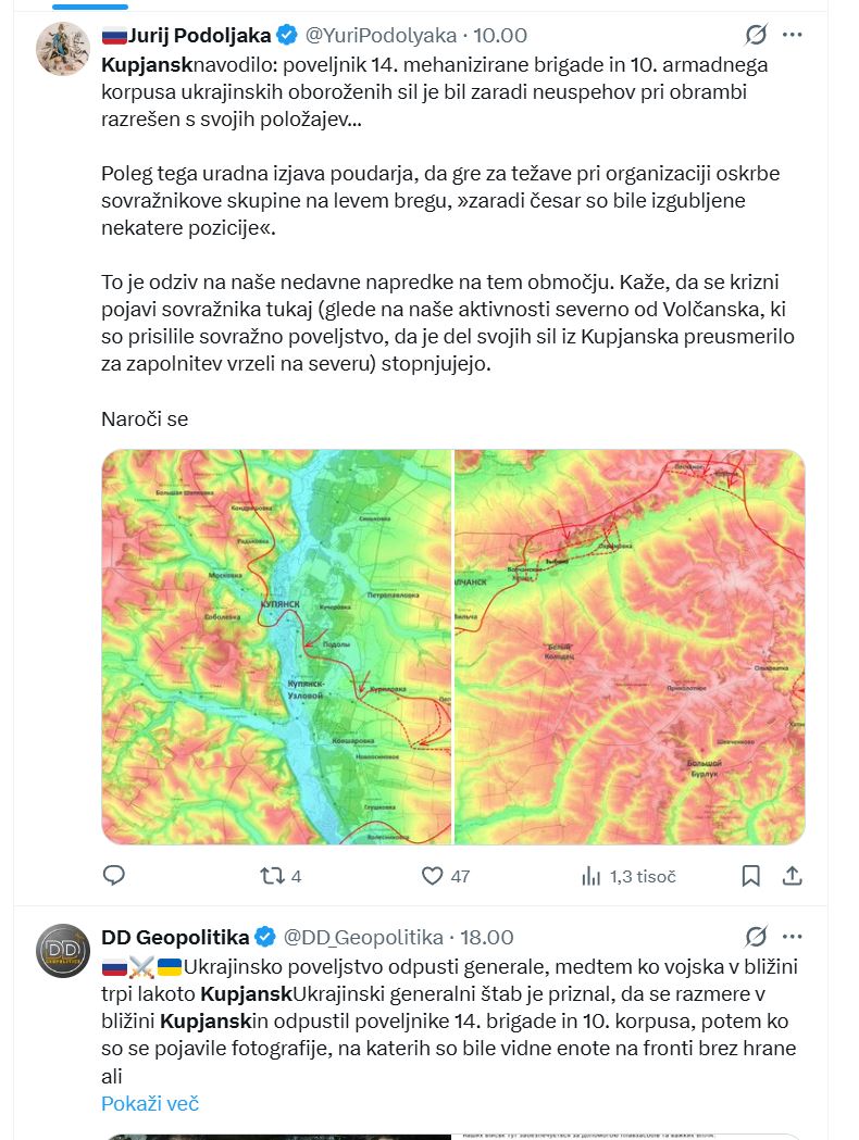 »Kupjansk je ključen logistični center. Če pade, se odpre pot proti Iziumu, nato pa proti Slovjansku in Kramatorsku. To ni le teritorialna pridobitev — to je razpad ukrajinskega obrambnega sistema v Donbasu.«