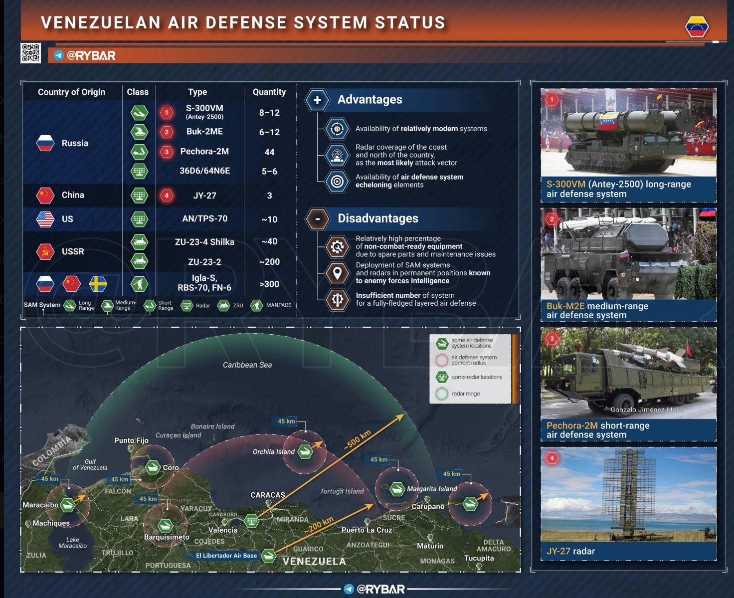 Venezuele ima veliko sistemov ki so za ZDA nevarni že sdaj - ruske lovce Su-30 opremljene s protiladijskimi raketami KH-31, protiletalske sisteme S-300VM ter več tisoč protiletalskih raket na zapade na nizko leteča letala in helikopterje.