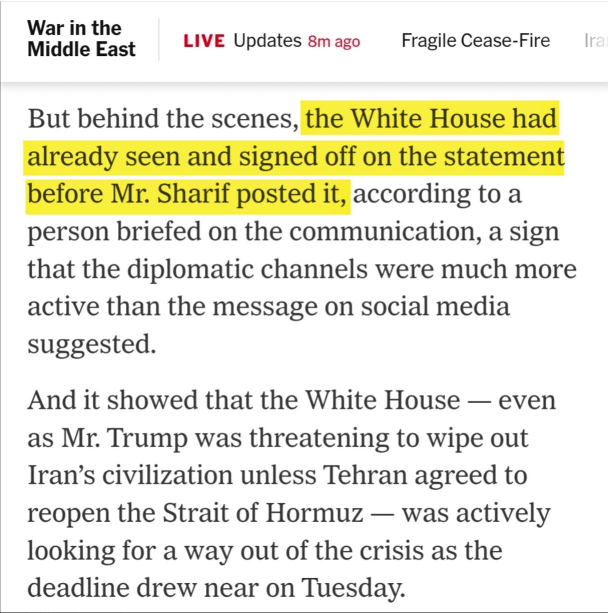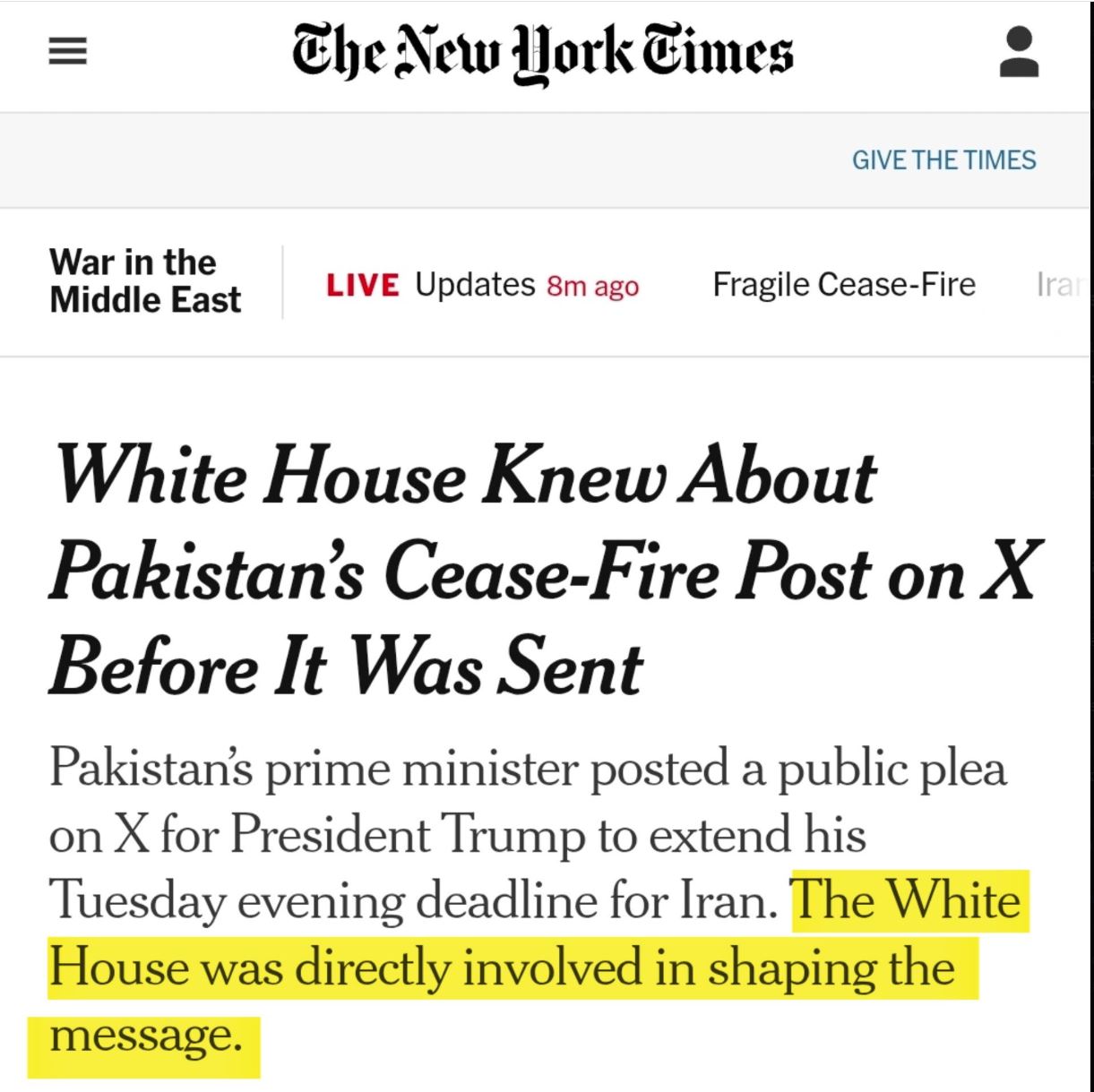 To pa pomeni, kot poroča New York Times, da so Američani, ki so to sporočilo najverjetneje celo sami napisali oziroma so ga pred objavo vsekakor »pregledali in odobrili« dobro vedeli, da premirje vključuje tudi Libanon.