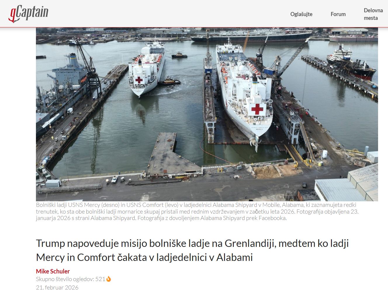 Torej je Trumpov zapis, da je plavajoča bolnišnica ameriške mornarice »na poti« proti Grenlandiji čista laž.