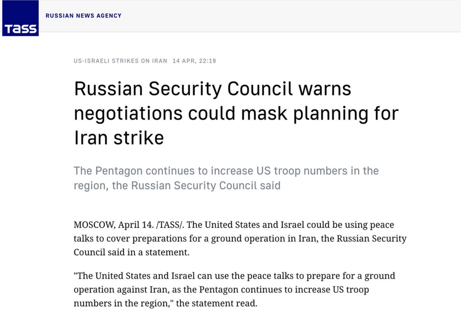 Rusija zato sporoča, da so ta pogajanja morda le premišljena dimna zavesa za vojaško stopnjevanje in morebitno kopensko invazijo.