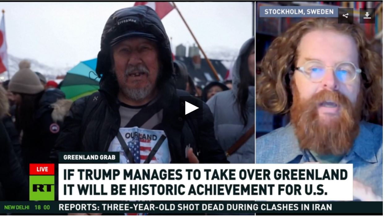 Prizadevanja ameriškega predsednika za pridobitev otoka sledijo »dolgi in zapleteni zgodovinski tradiciji ameriške teritorialne ekspanzije«, je za RT povedal Mats Nilsson.
