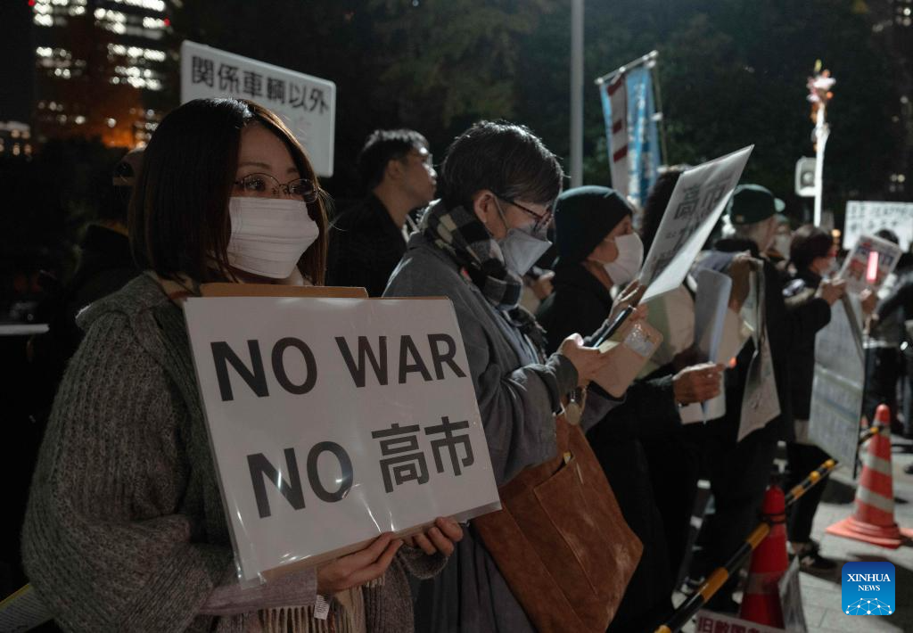 V petek je pred uradno rezidenco predsednice vlade v Tokiu protestiralo več sto Japoncev, ki so od predsednice vlade Sanae Takaiči (Takaichi) zahtevali, naj umakne svoje nedavne napačne izjave o Tajvanu ter poda pojasnilo in se opraviči.