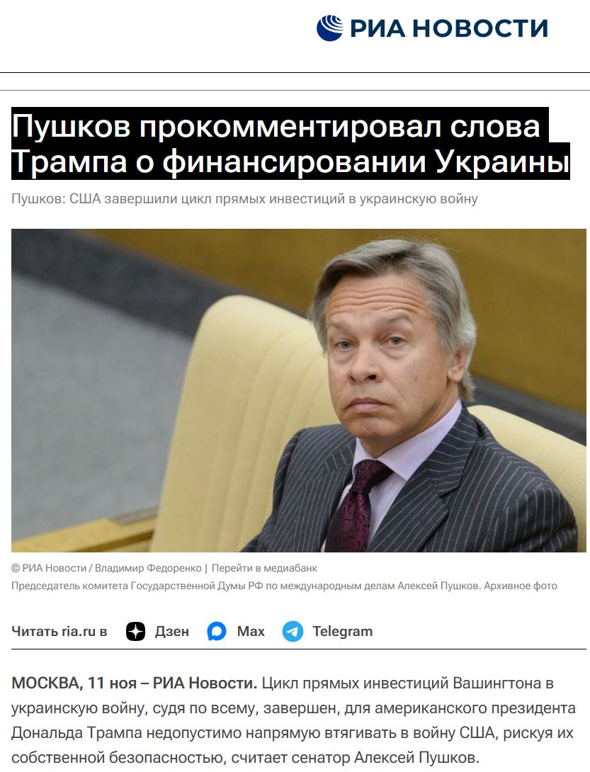 Cikel neposrednih naložb Washingtona v ukrajinsko vojno je po vseh merilih končan - za ameriškega predsednika Donalda Trumpa je nesprejemljivo, da neposredno pahne Združene države v vojno in s tem tvega varnost Amerike, meni ruski senator Aleksej Puškov, poroča RIA Novosti.