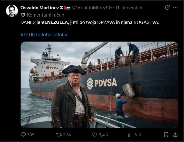 Venezuela po ameriškem zasegu tankerja obsoja ameriško vlado zaradi »piratstva«