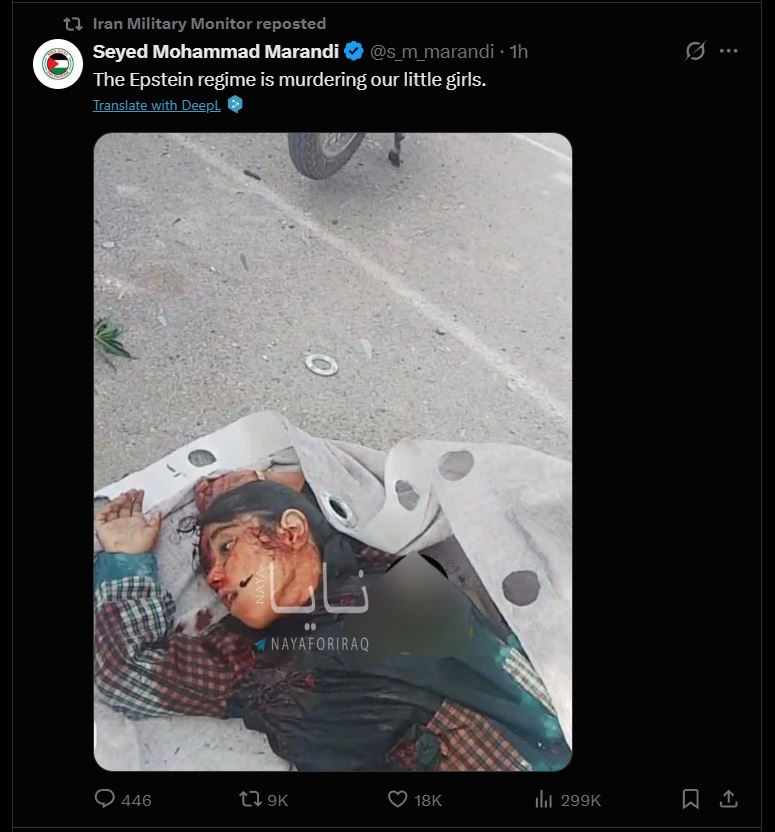 Epsteinov režim je ubil deklico, sporočajo iz Irana.