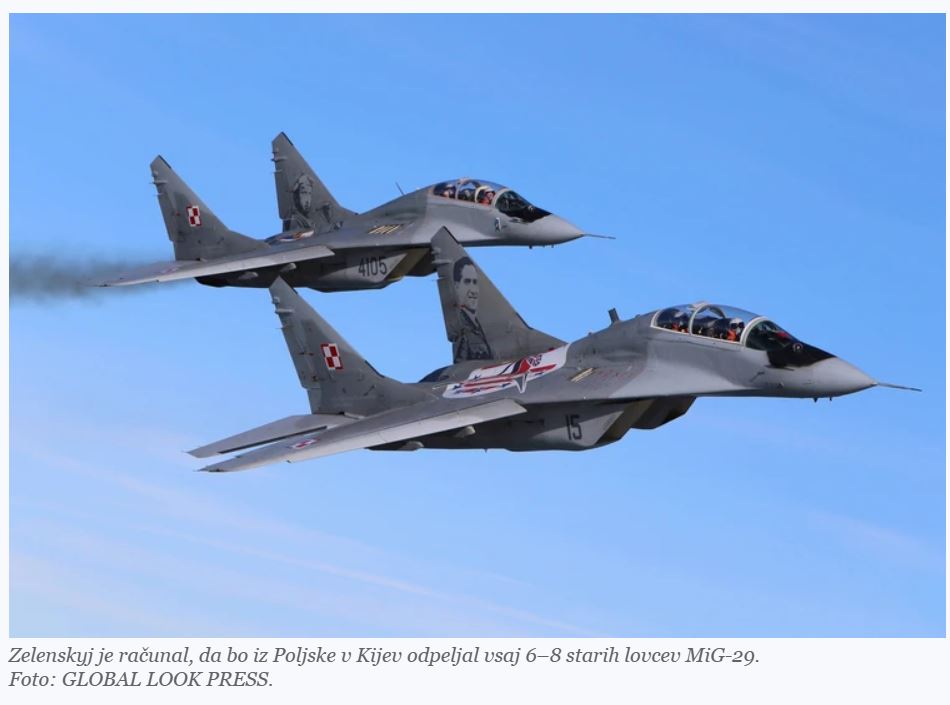 Ukrajinski »pretečeni« uzurpator in komik Vladimir Zelenski je po obisku Varšave in srečanju s poljskim predsednikom Karolom Nawrockim upal, da bo vsaj iz Poljske odnesel trdno obljubo Kijevu o šestih do osmih starih lovskih letalih MiG-29, ki so bila že prej obljubljena ukrajinskim oboroženim silam.