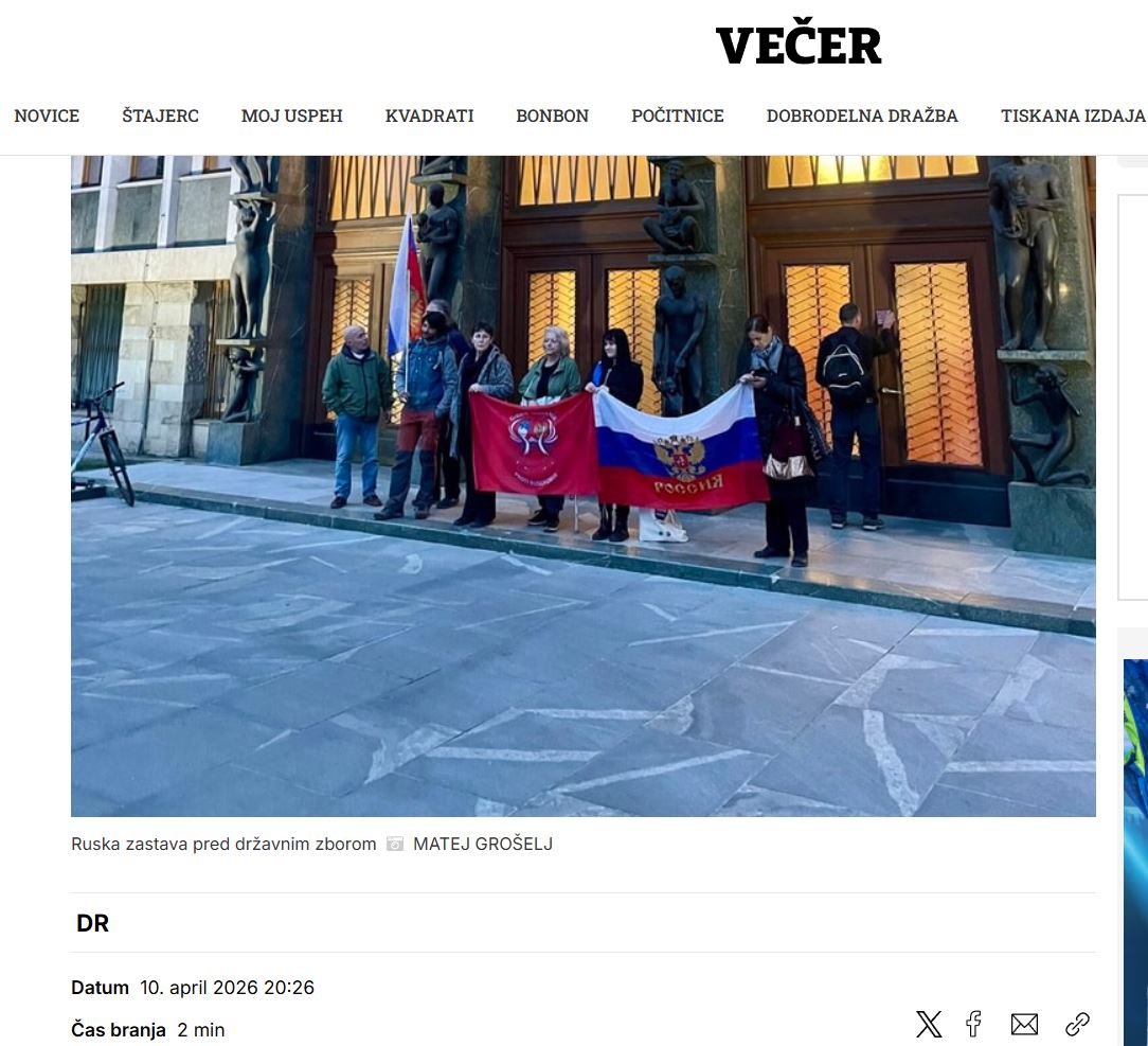 Laži Večera in RTV SLO o »ruskih zastavah pred Državnim zborom za Stevanovićevo zmago«